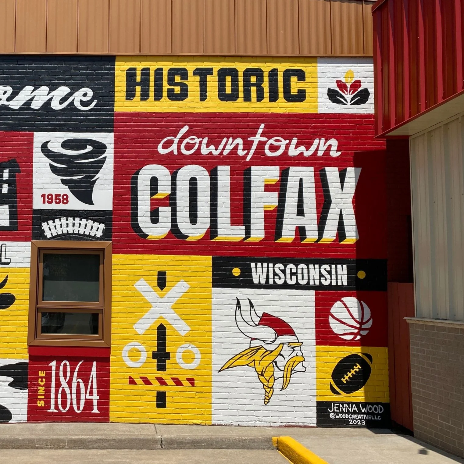 βWe were looking for an artist to paint a large mural capturing historic Colfax Wisconsin on our local business. Jenna Wood at Wood Creative LLC more than delivered. Her design was way better than anything we could have imagined! She took the time to research the town and incorporate it perfectly into the design. We highly recommend Jenna Wood for any and all of your mural needs!β